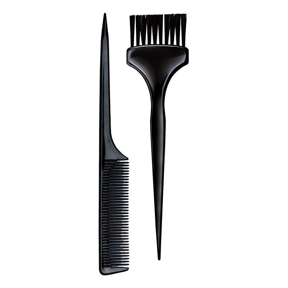 Kit contém 01 unidade de Pincel para Tintura e 01 unidade de Pente com Dentes finos (separador de mechas)